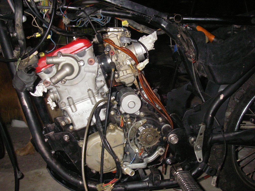 That is the reason why I had to tip a little forward. The engine´s original bike is a competition motocross version, Husquarna TC450.