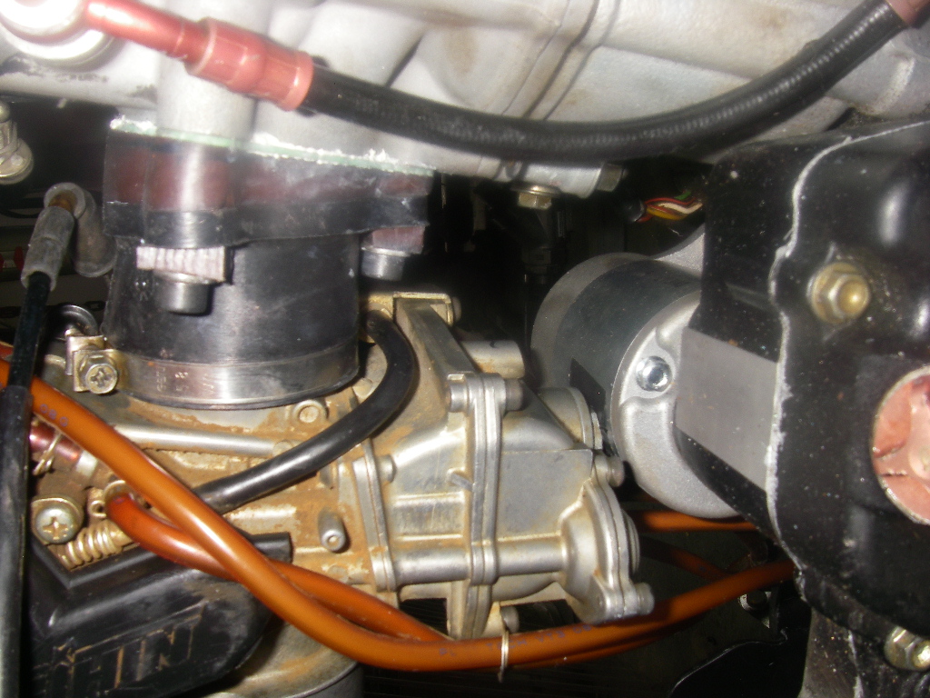 1889 although I shaved 1° off the bakelite wedge the carburator still hits the starter motor. => will have to shave more tomorrow.