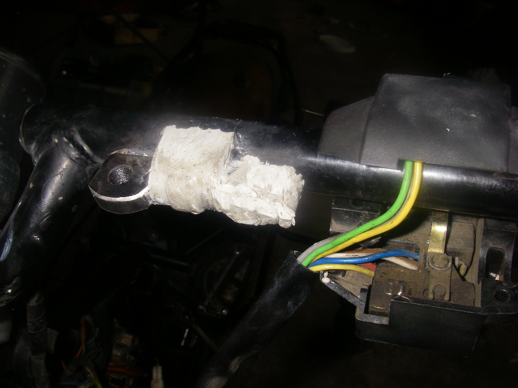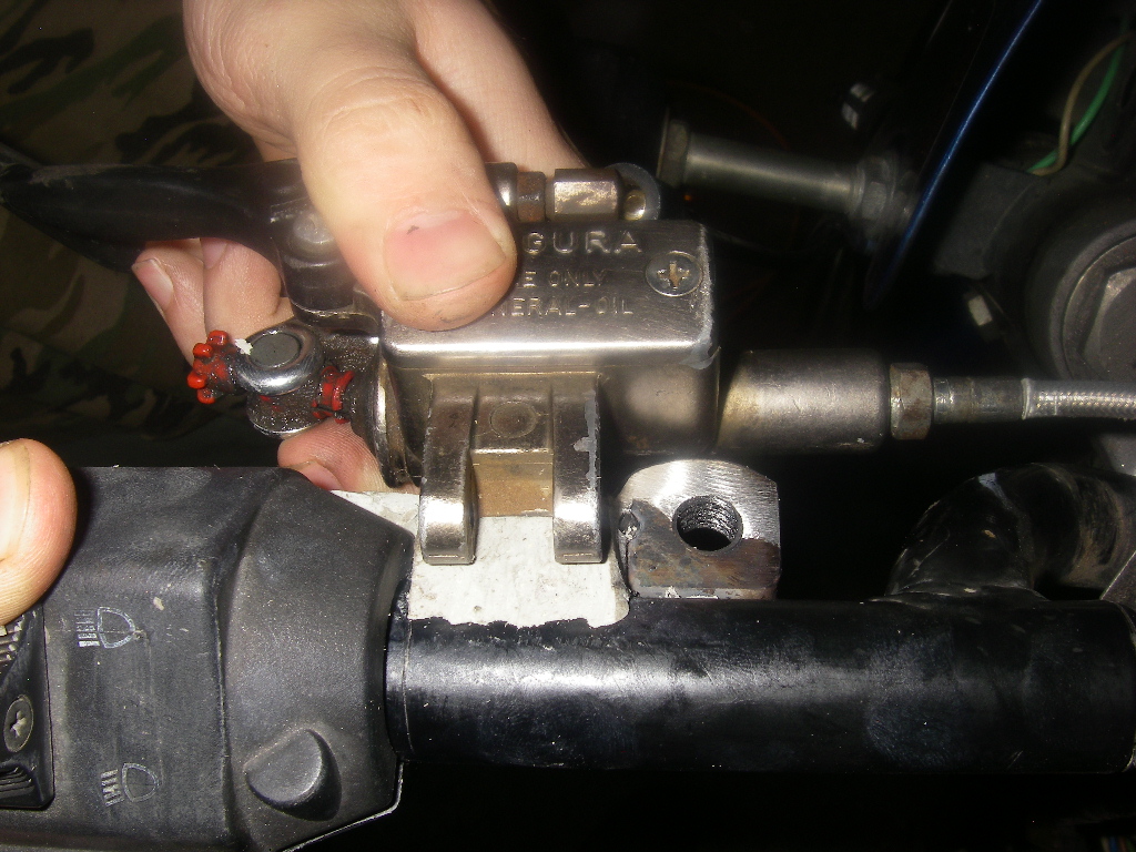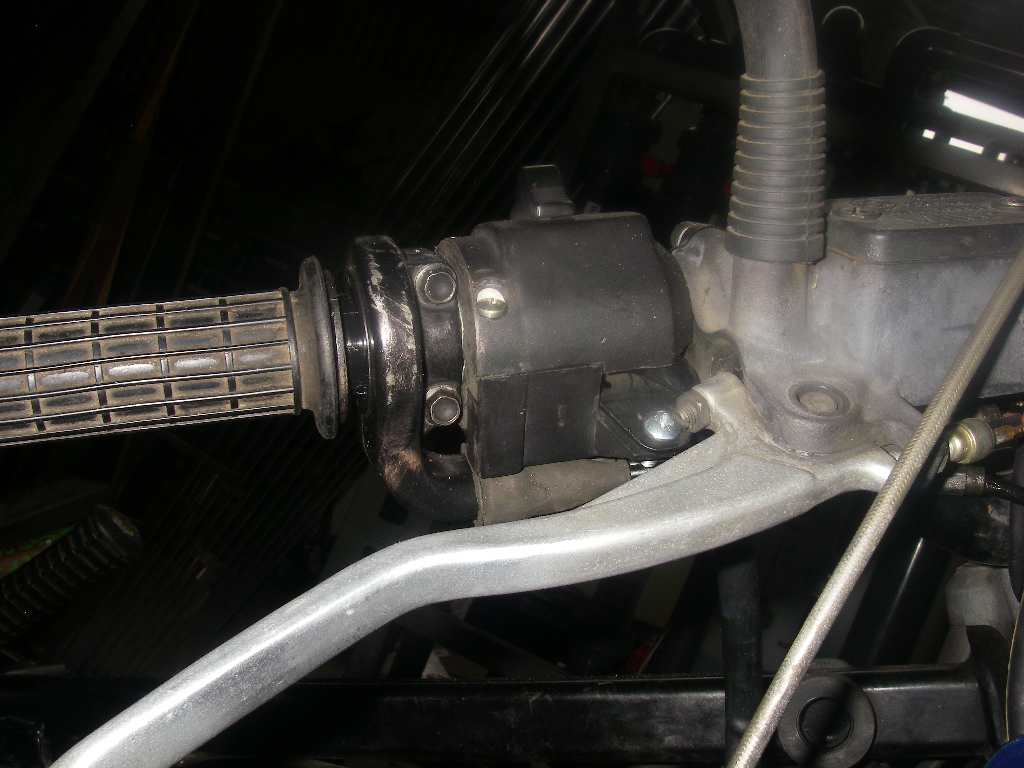 1892-93 The right handle with a self made starter pushbutton on the right side of the kill switch. 2 component Epoxi and silicone are helpers again.