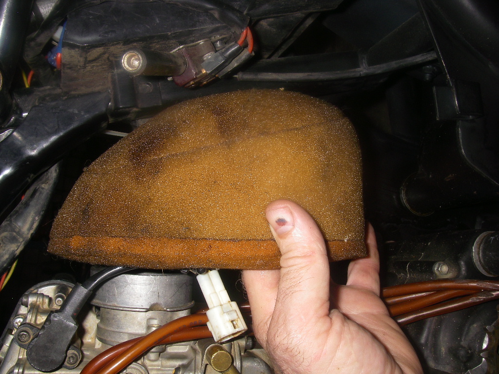 Well today I had to change oil in the KLR solo and while talking to a neighbour I overfilled her quite a bit.