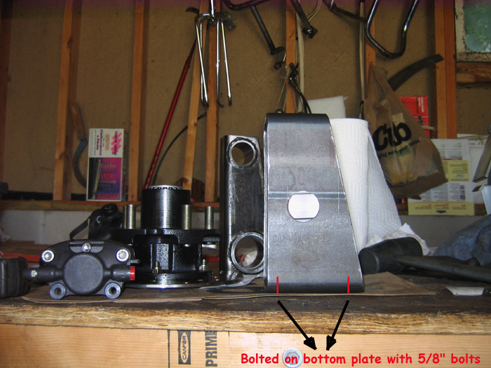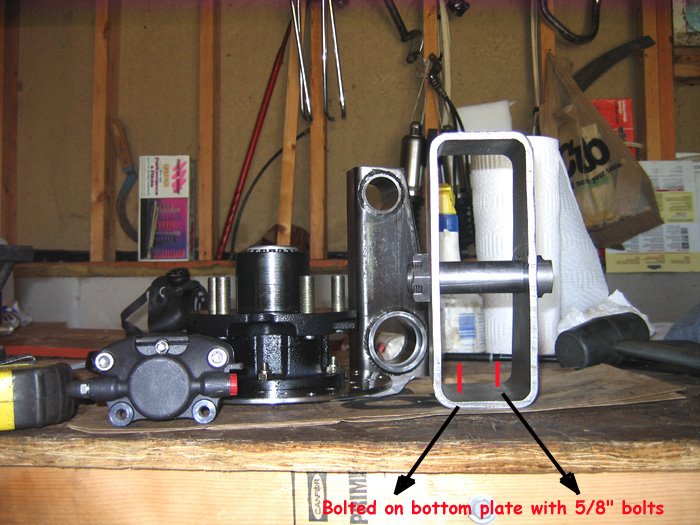 I have attached two pictures with the approximate locations of the two 5/8” bolts to fasten the swing-arm bracket to the frame. The base of the swing arm bracket is about 3.0” in width and 5.0” in length. One of the two bolts holes will be oval in shape to allow the necessary movement of the swing-arm bracket in reaching the desired toe-in.