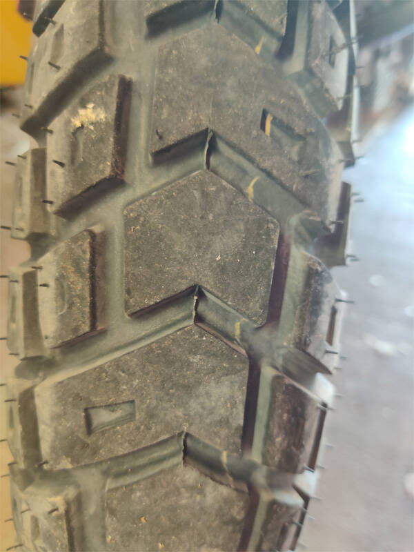 Finally, I've noticed the tires do a very nice job of absorbing small harsh hits. Again, will see as the tires wear how that maintains. I would expect the rear tire to continue that trait due to the sidewall being 1/2" taller than the old car tire that was removed. Front tire the knobs are pretty tall, so wear may change. Tires are too new to talk about grip. Except to say that they grip as well as expected for new tires. Maybe the front is a bit of a happy surprise. I was a bit hesitant as it looks so close to the E705, and that tire even when new, slid around pretty good on the street.