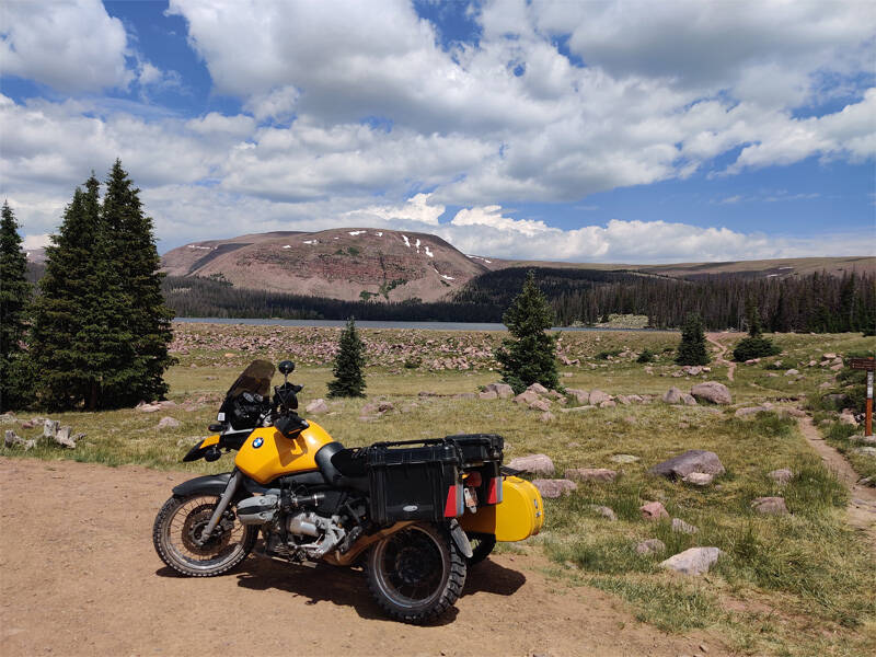 Took a fun ride up the mountain today. Fort Duchesne to Chepeta Lake in the Ashley National Forest. About 95 miles of which pretty much half is a beat up forest road, half is nicely paved back country roads. The forest service road sees a lot of traffic. Cattle trucks & cattle being driven down the trail to trucks waiting below, 4x4s, motor homes, 5th wheel travel trailers & horse trailers, etc.. It gets a lot of use. Also it hasn't been surfaced in a few years, so there are getting to be some pretty deep tire ruts, along with half exposed rocks. There is a lot of sharp 1/2" to 1-1/2" loose rock littering the road. The Forest service road climbs from about 8K' asl, to just over 10.5K' asl in that 20-ish miles. Plenty of opportunity to put some good power to the rear tire, and braking on the front tire.