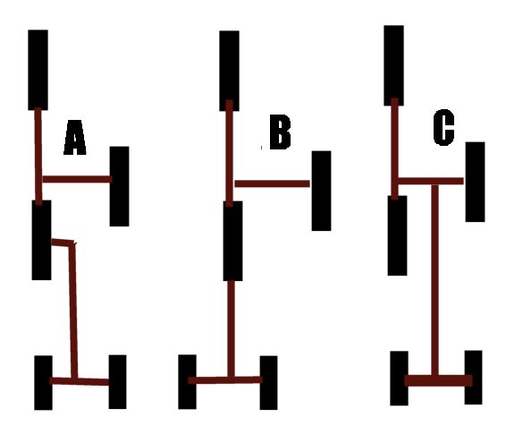 Aren't version A and C the same thing. They appear to be connected to a different point on the frame but wouldn't the effect on handling be the same? They both increase the drag effect the sidecar has on the bike.