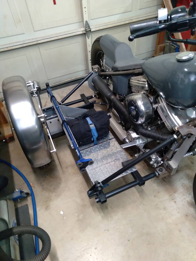 So all the gory details are on the post I made on the introduction portion of this forum. It was suggested that I detail my rig. I'll leave it up to you if you think it belongs here. Disclaimer 1, I don't consider it a sidecar, it's a purpose built, hopefully temporary, attachment I built so I could work out some adaptive issues. However, the basic construction may be of help to those here looking to build their own rig. I do have to say it has worked well beyond my expectations. Disclaimer 2 If it turns out that I can't ride on two wheels again, since I built the first version this bike 20 years ago, (the 2008 version is my avatar here) and I like it, I will build a wider version of the chassis so I can still enjoy it. So, if you think it's worth staying posted here, cool, I have build pics, and can explain my methods, or if you think it needs deleted from this forum, say so, and I will delete it. Thanks.