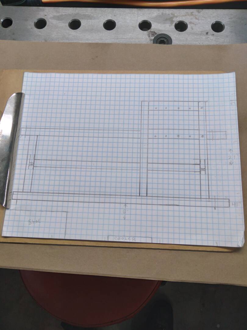 So, with the liquid sunshine coming down here, I started working on plan B. A rough 1/4 scale of a new chassis in PAD, (pencil aided design).