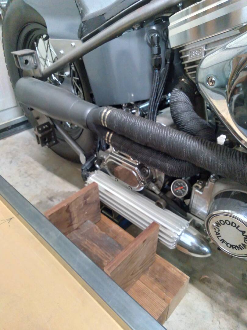 After I built the 2 into 1 exhaust, there was a big empty spot below the transmission. So I mounted a universal 2 pass heat sink type fluid cooler in that spot, and plumbed it with more -6 lines. I index off the cooler with a simple spacer, and along with the adjustable table, setting up the lower mounts is a breeze. While the lower bike mounts are the same distance from the ground, they aren't the same distance from the chassis.