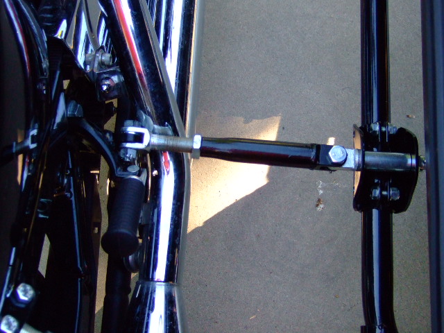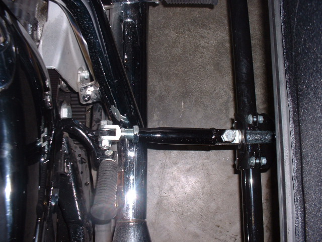 A fabricated lower rear bracket as shown, will allow the sidecar to be mounted further back in relation to the bike.