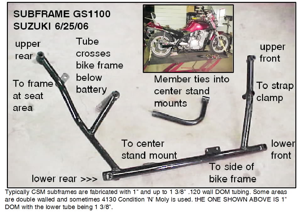 We have done a couple of Suzuki rigs and one GS1100 with a Terraplane. It is a pretty straigth forward setup if you use a subframe. We did use a four point mounting system though. See attached subframe picture below.