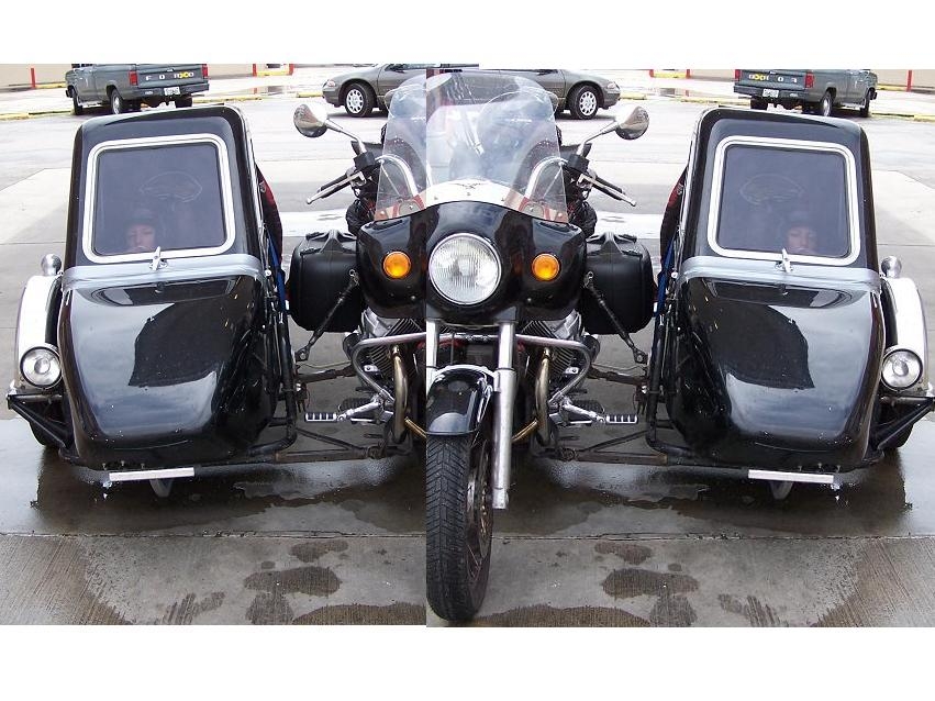 The geometry would not work....i can remember a chariot kinda trike, PULLING a tandem set of cars.....any other weird and unusual configuration out there...pics.....re-name the post.....Can you top this/ or/ send in your favorite sidecar related PICS. I'll start w/ a few of my favorites.