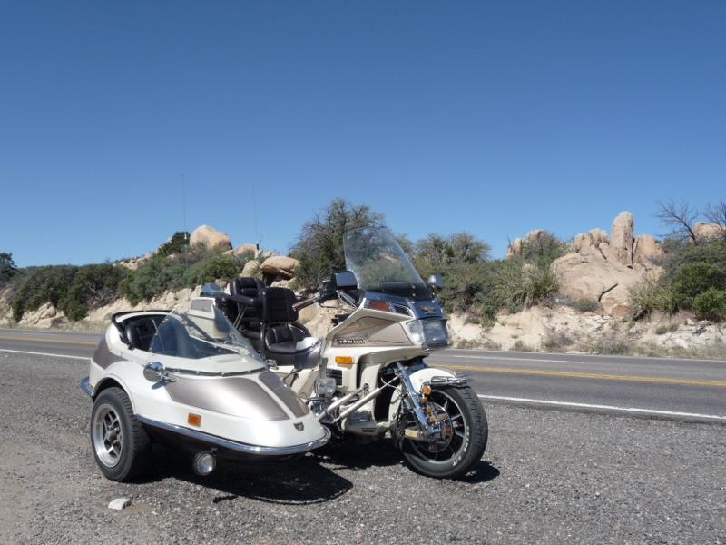 The rig is an '86 Oldwing GL1200 with a California sidecar.