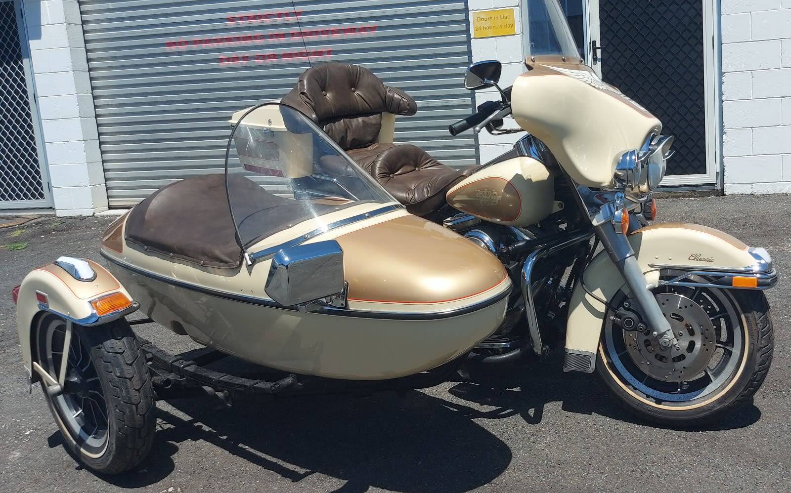 I believe you’re asking about the white one at the top of the page. That’s a standard Harley sidecar. The frame isn’t standard HF because it doesn’t have the leaf spring suspension and looks like a better frame than HD standard. If you look at the one shown by brstar above, that’s all standard HD kit.